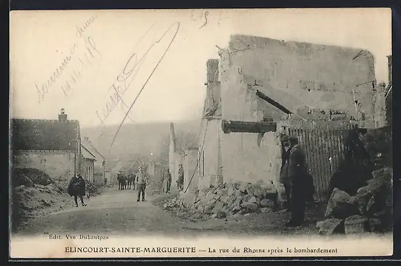 AK Elincourt-Sainte-Marguerite, La rue du Rhone après le bombardement