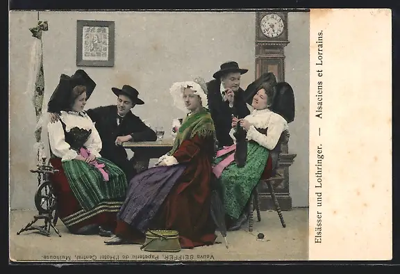 AK Elsässer und Lothringer in elsass-lothringischer Tracht am Tisch
