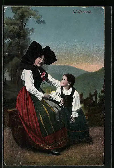 AK Elsässerin in Tracht mit ihrem Kind