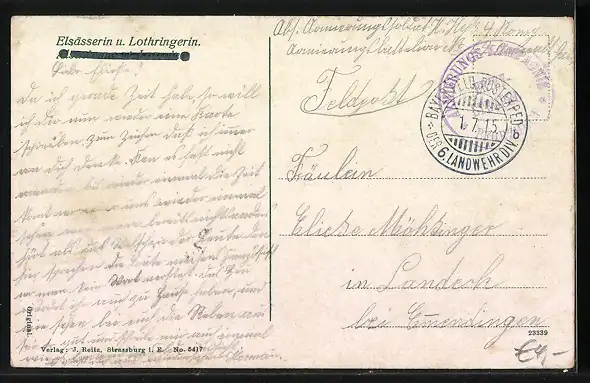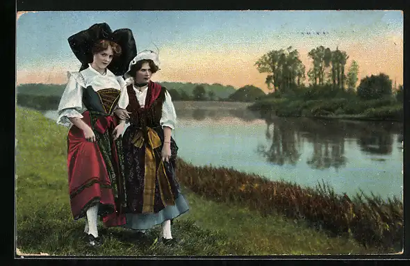 AK Elsässerin und Lothringerin in Tracht am Ufer