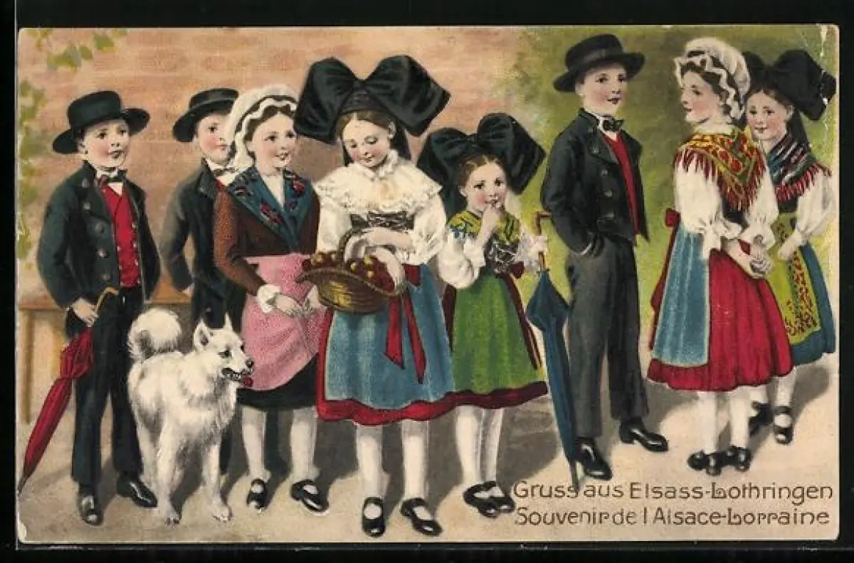 AK Elsass-Lothringen, Jungen u. Mädchen in Trachten