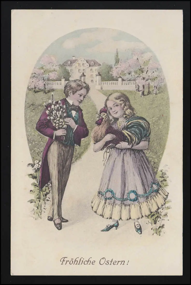 AK Enfants couple élégant coq chaton, Pâques, selon INGOLSTADT 27.3.18