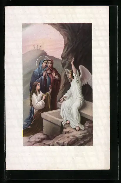 AK Engel hebt mahnend den Finger, Frauen lauschen andächtig
