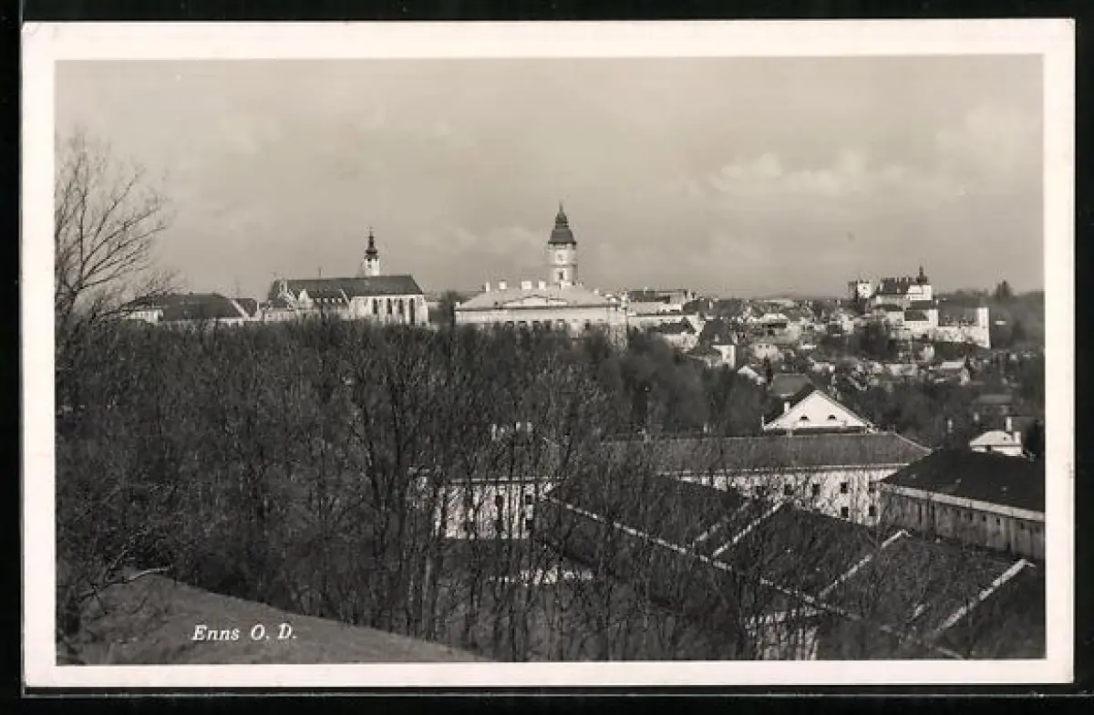 AK Enns /O. D., Panorama mit Kirche und Turm