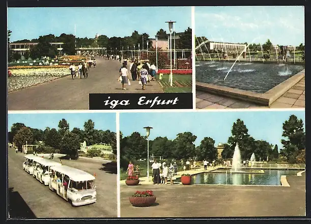 AK Erfurt, Internationale Gartenbau-Ausstellung, IGA-Express, Teilansichten des Ausstellungsgeländes