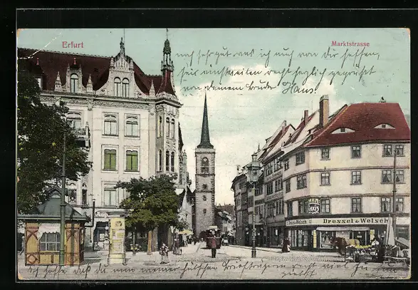 AK Erfurt, Marktstrasse mit Kirche und Strassenbahn