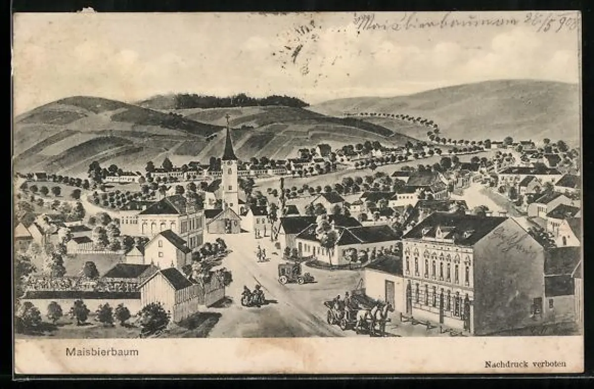 AK Ernstbrunn /N.-Oe., Maisbierbaum, Panorama des Ortes