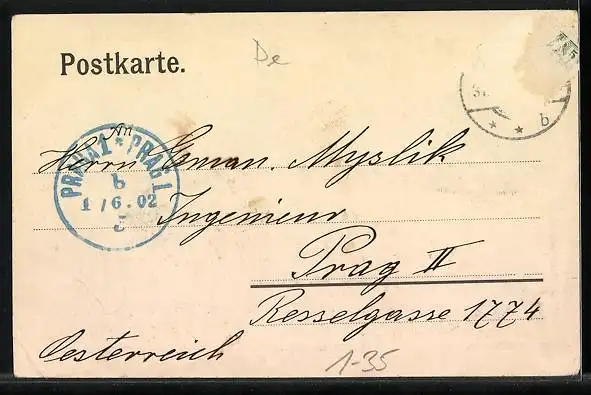 alte Ansichtskarte, gelaufen 1902, Briefmarke entfernt, guter Zustand