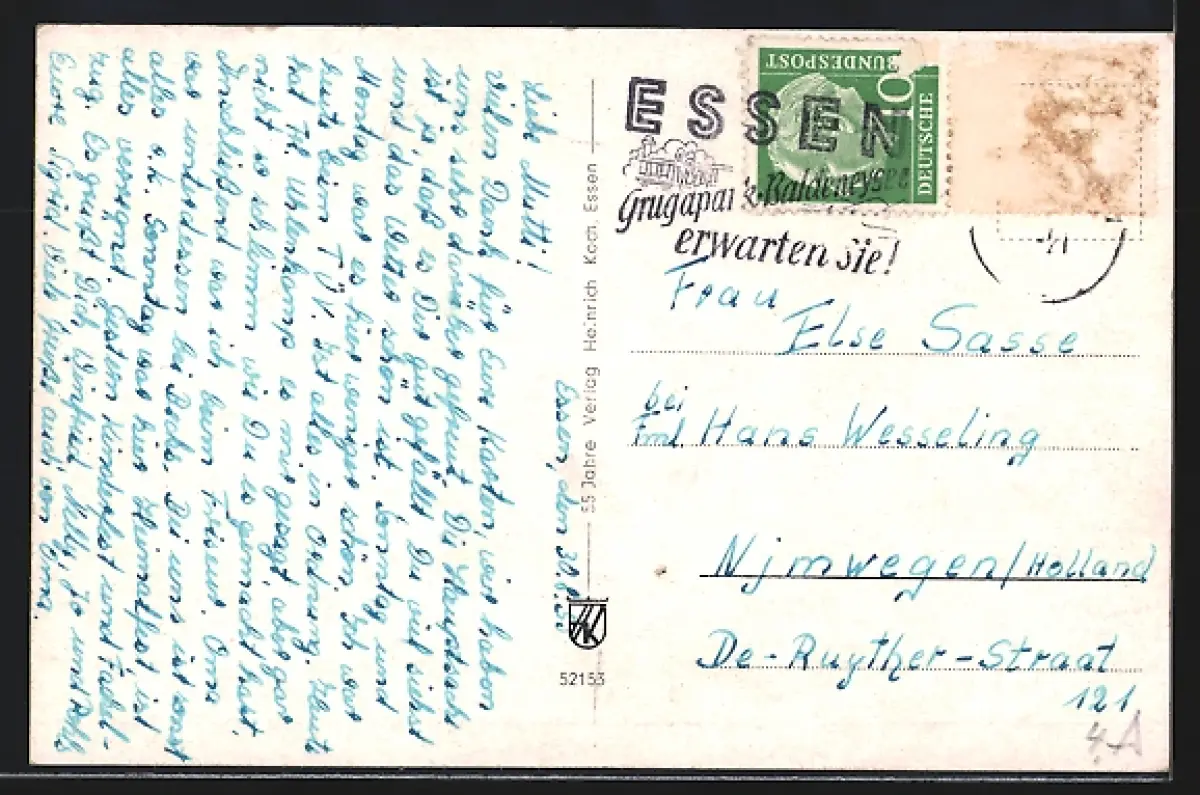 alte Ansichtskarte, gelaufen, Briefmarke entfernt, Bugspur m. kl. Einriss li. oben, guter Zustand