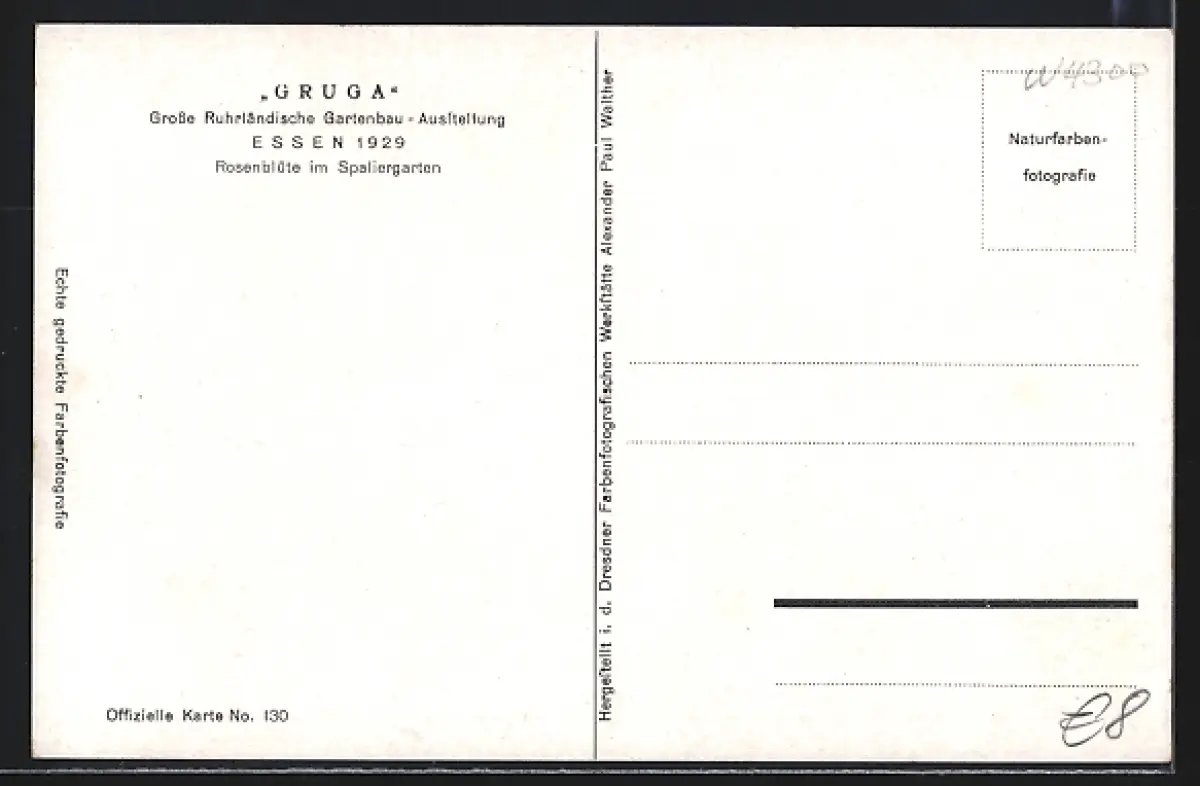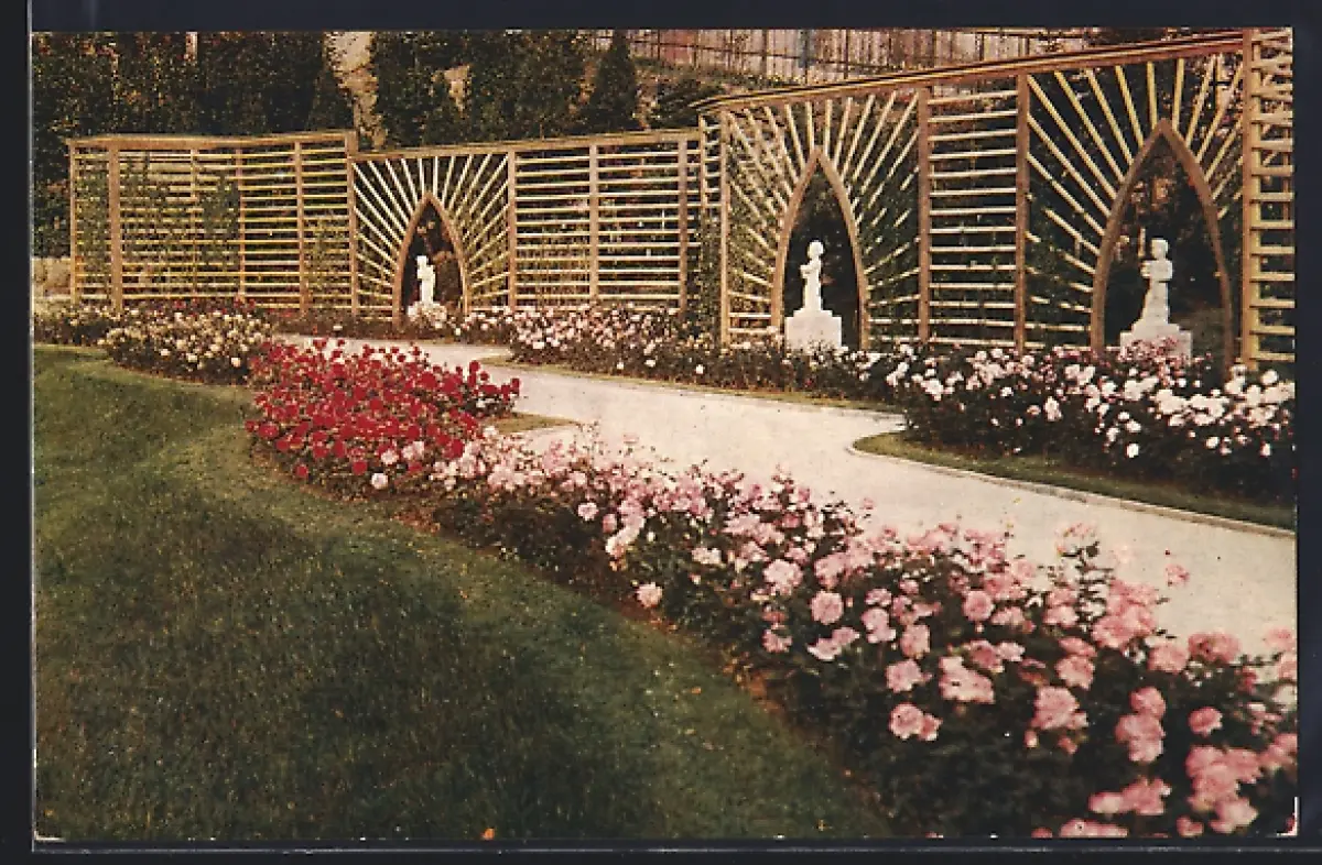AK Essen, GRUGA 1929, Rosenblüte im Spaliergarten