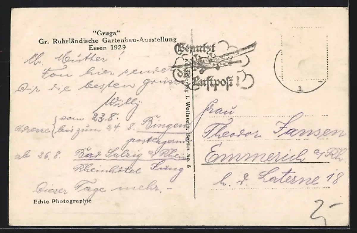 alte Ansichtskarte, gelaufen, Briefmarke entfernt, Eckknicke li. unten und re. oben, guter Zustand