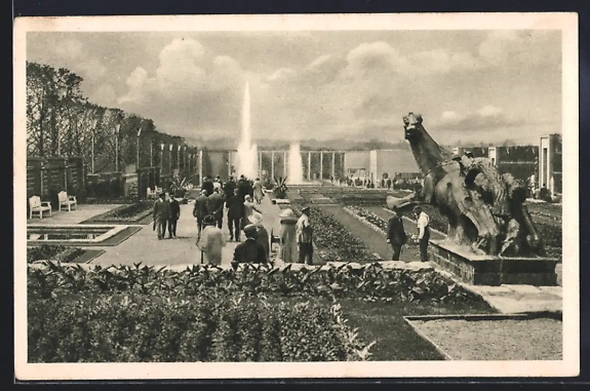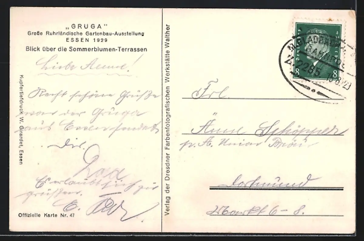 AK Essen, Grosse Ruhrländische Gartenbau-Ausstellung GRUGA 1929, Blick über die Sommerblumen-Terrassen