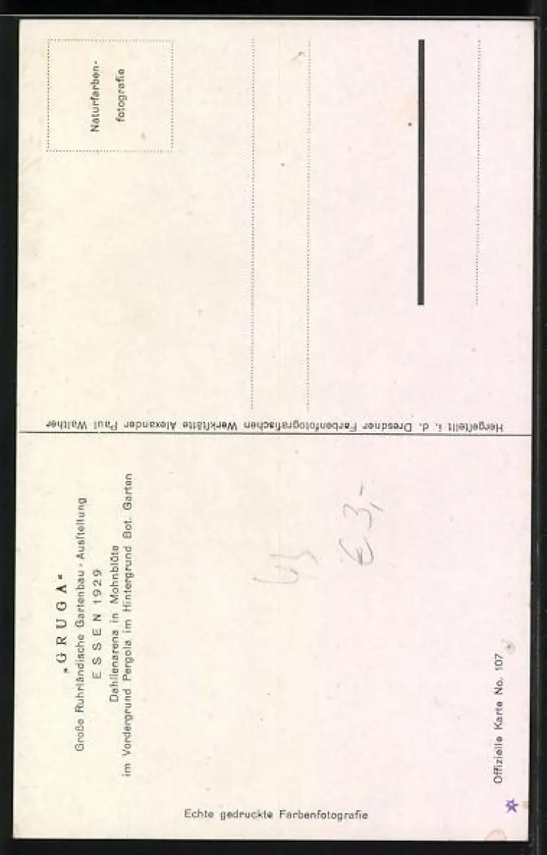 AK Essen, Gruga 1929, Dahlienarena in Mohnblüte, Im Vordergrund Pergola, Im Hintergrund Botanischer Garten