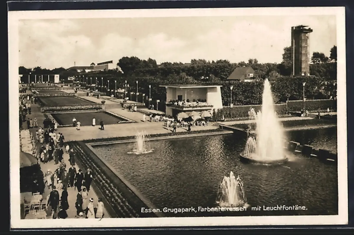 AK Essen, Grugapark, Farbenterrassen mit Leuchtfontäne