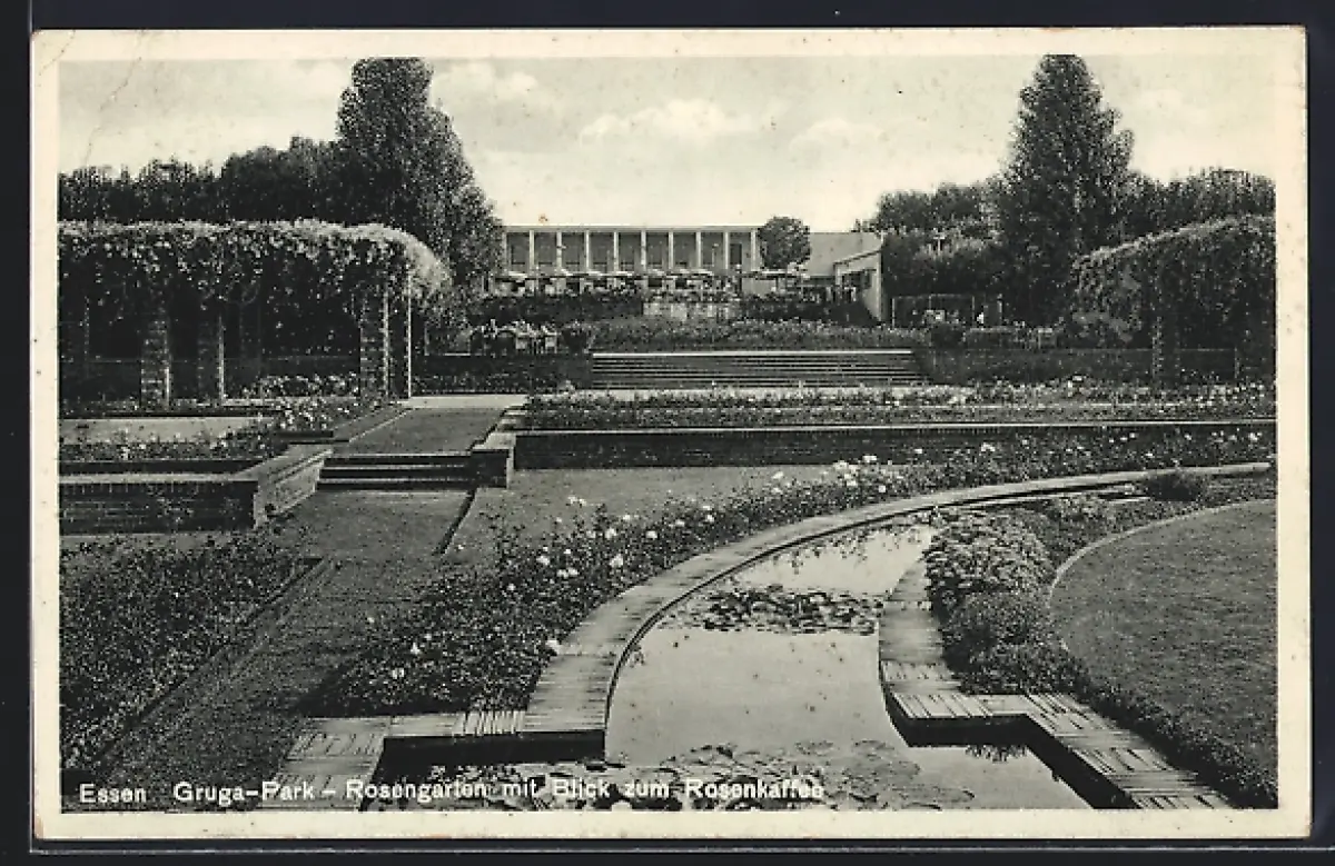 AK Essen, Grugapark, Rosengarten mit Rosenkaffee