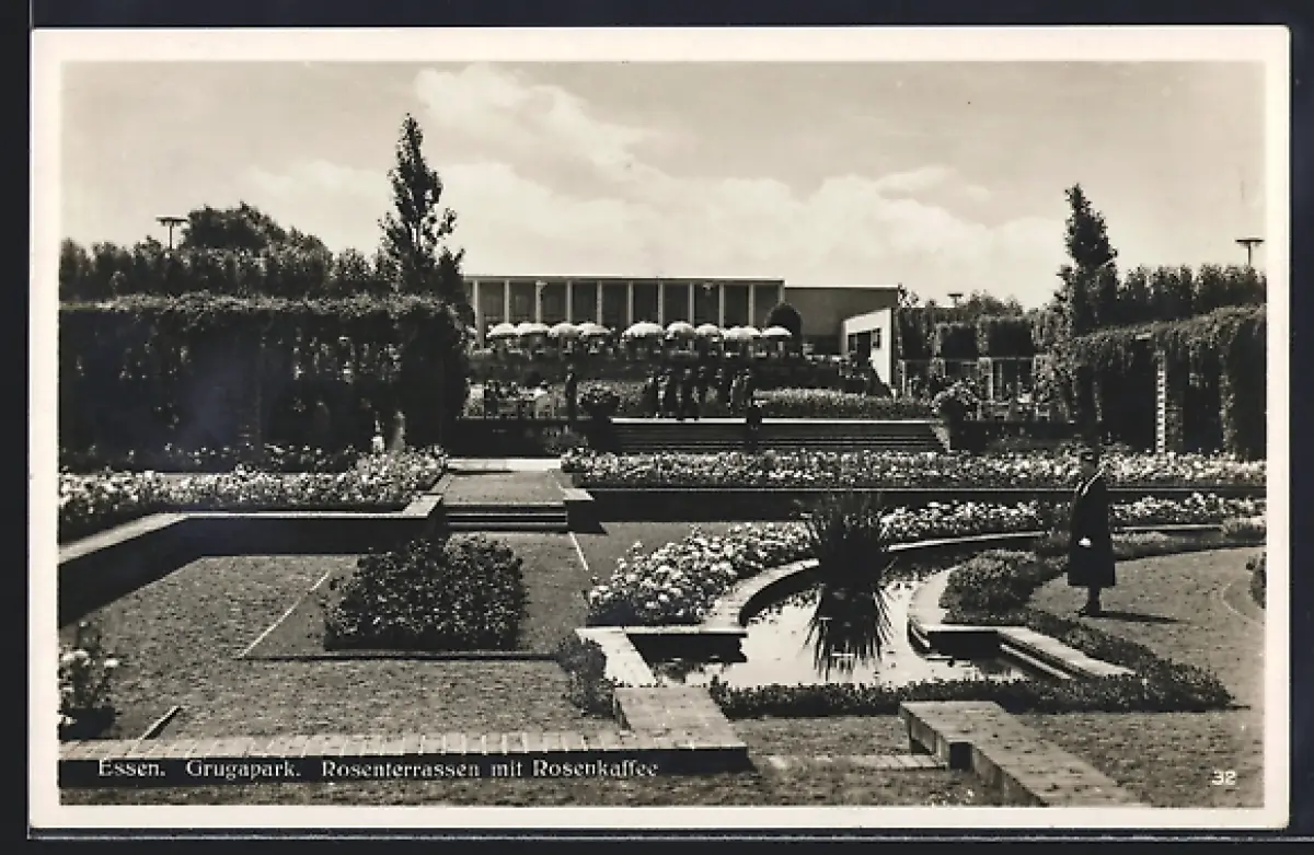 AK Essen, Grugapark, Rosenterrassen mit Rosen-Kaffee