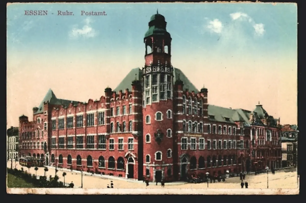 AK Essen-Ruhr, Strassenpartie am Postamt