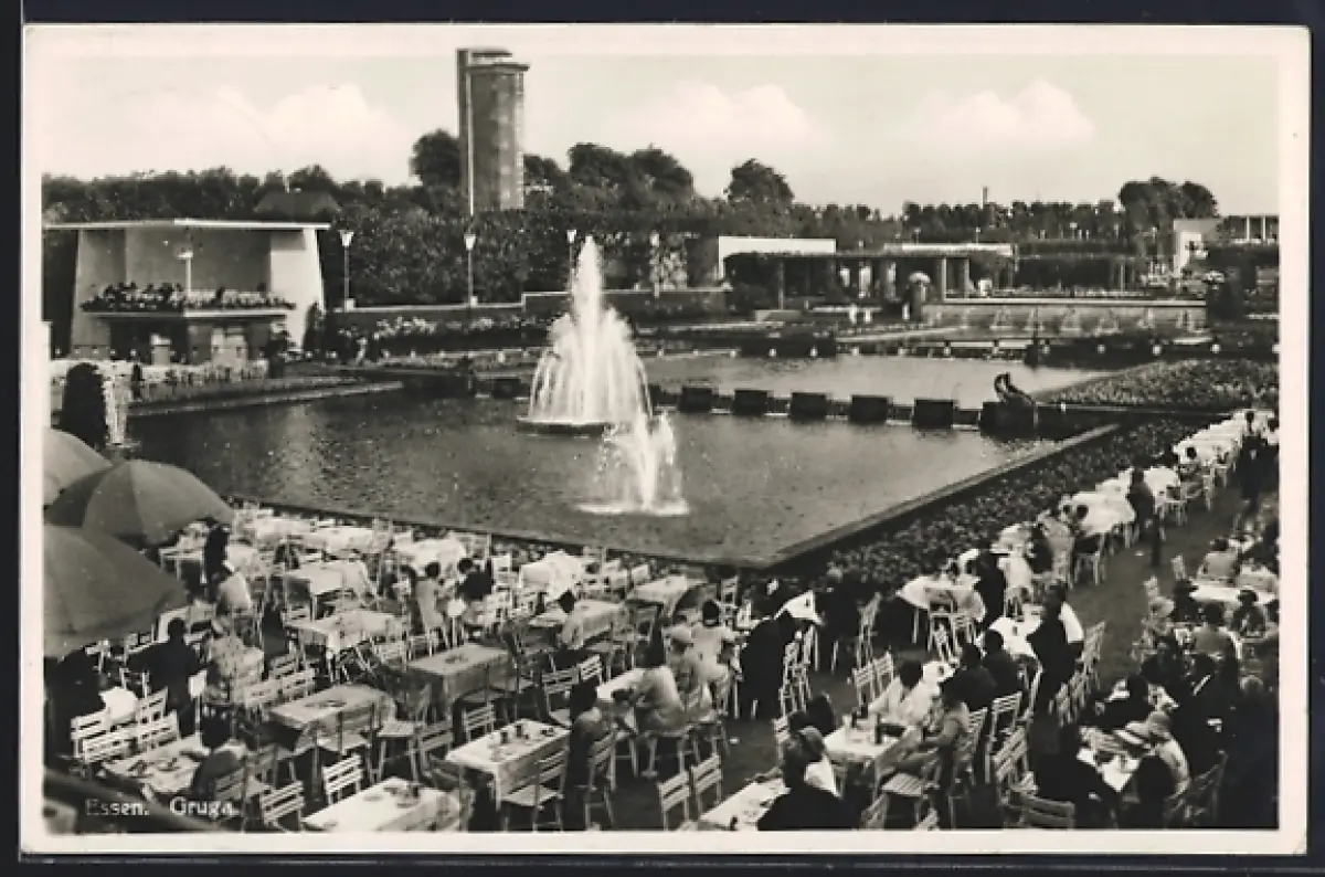AK Essen, Springbrunnen am Restaurant bei der Gruga