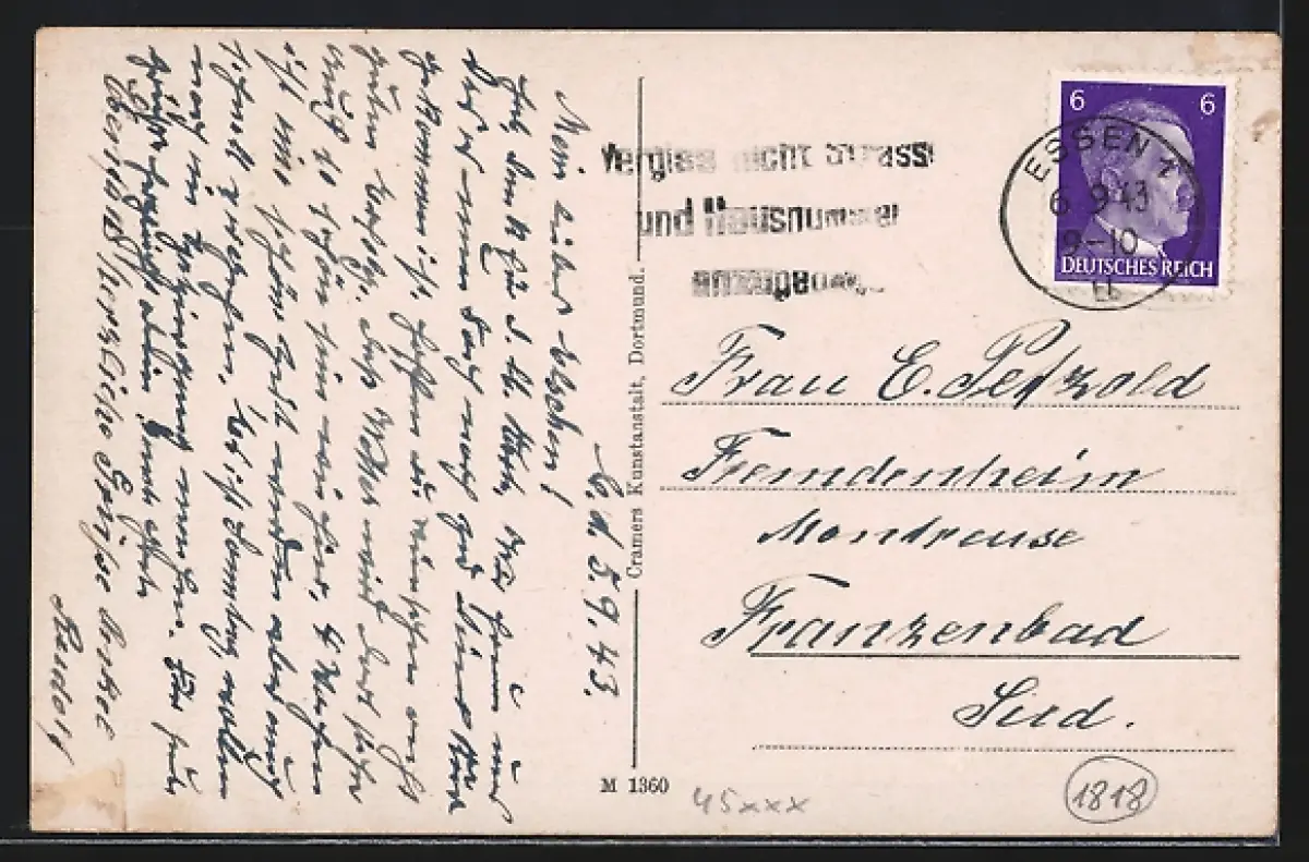 alte Ansichtskarte, gelaufen 1943, Stempelspur, Eckknick re. unten, guter Zustand