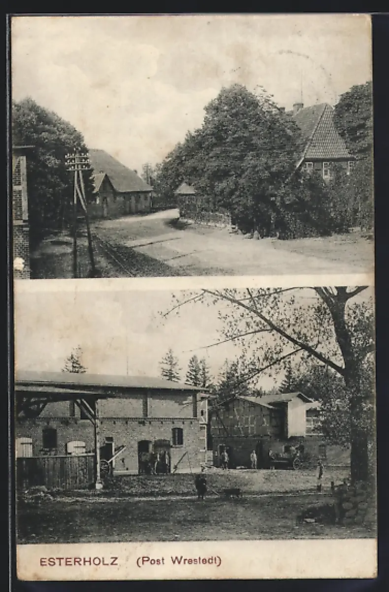 AK Esterholz, Strassenpartie, Gehöft des Gutes