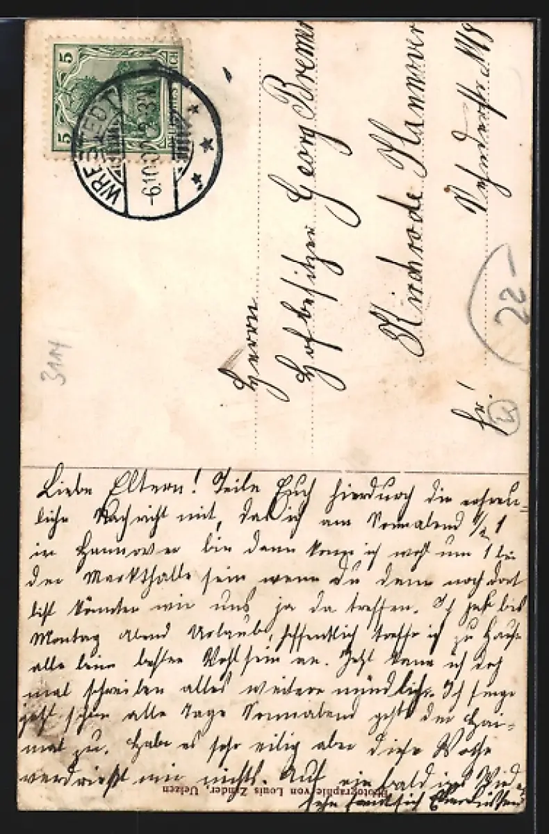 alte Ansichtskarte, gelaufen, Stempelspur, guter Zustand