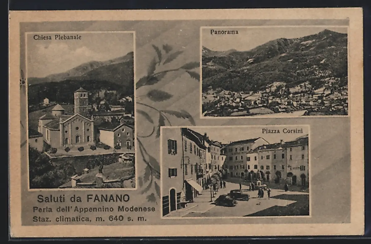 AK Fanano, Chiesa Plebanale, Piazza Corsini, Panorama