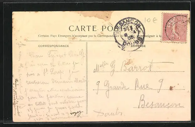 gelaufen 1905, leicht fleckig, Stempelspur, sonst guter Zustand