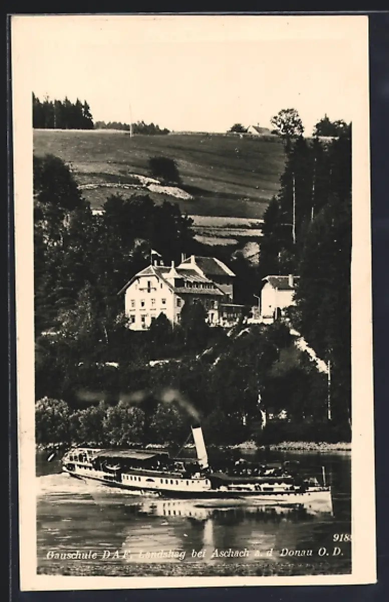 AK Feldkirchen an der Donau, Landshaag bei Aschach, Salondampfer vor der Gauschule DAF