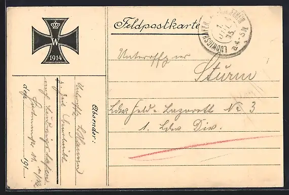 AK Feldpostkarte, Eisernes Kreuz 1914