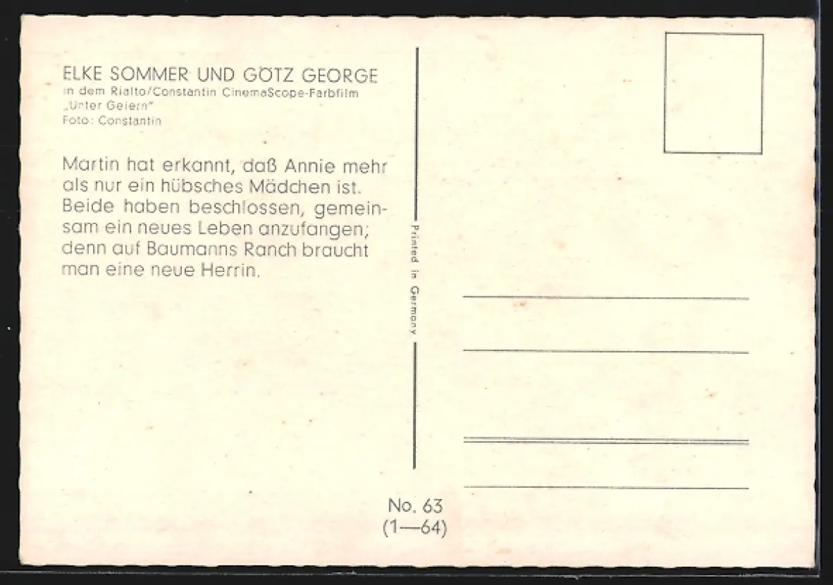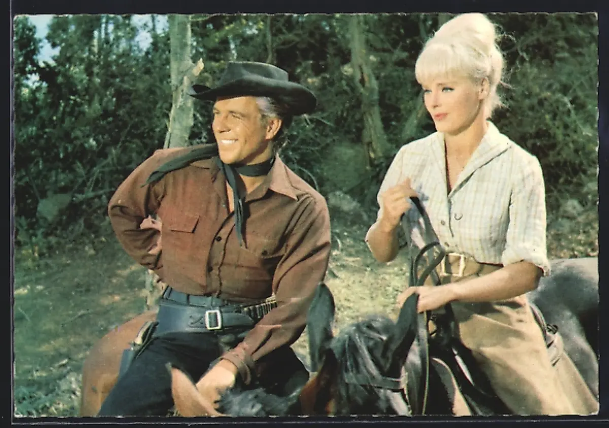 AK Filmszene aus Karl Mays Unter Geiern, Elke Sommer und Götz George