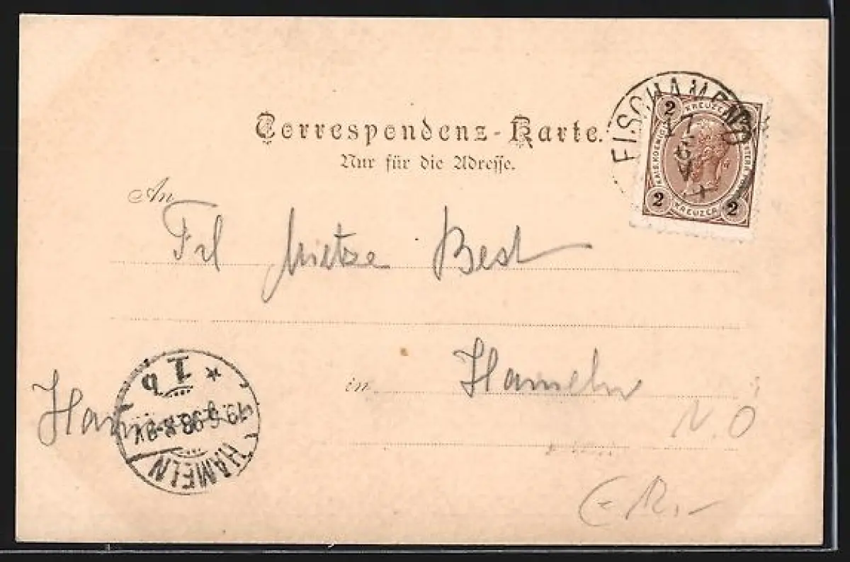 alte Ansichtskarte, gelaufen 1898, Stempelspur, guter Zustand