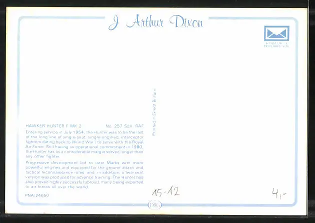 AK Flugzeug Hawker Hunter F MK 2 WN950, No. 257 Sqn. RAF