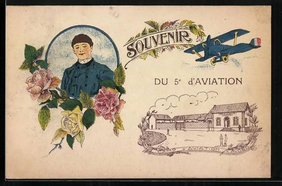 AK Flugzeug und französischer Soldat