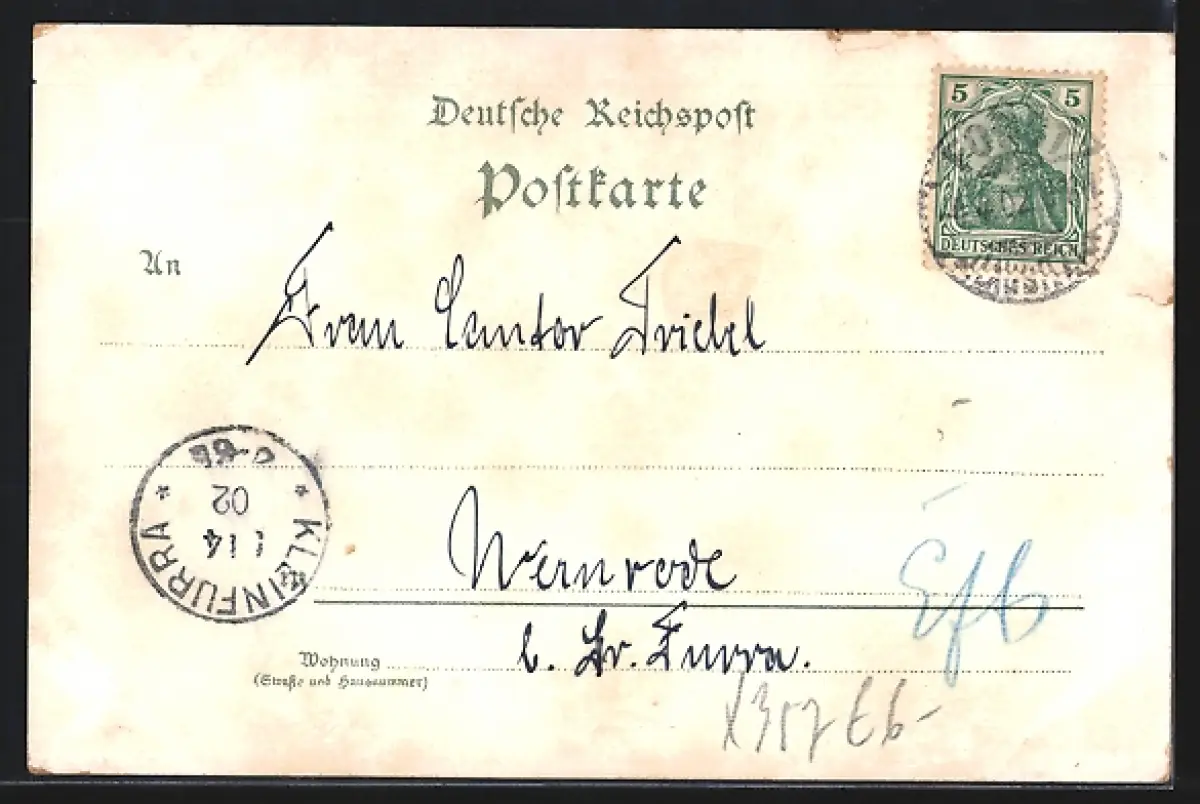 alte Ansichtskarte, gelaufen 1902, kl. Einriss li. oben, guter Zustand