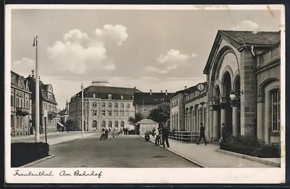 AK Frankenthal / Pfalz, Partie am Bahnhof mit Passanten