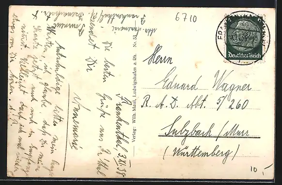alte Ansichtskarte, gelaufen 1938, guter Zustand