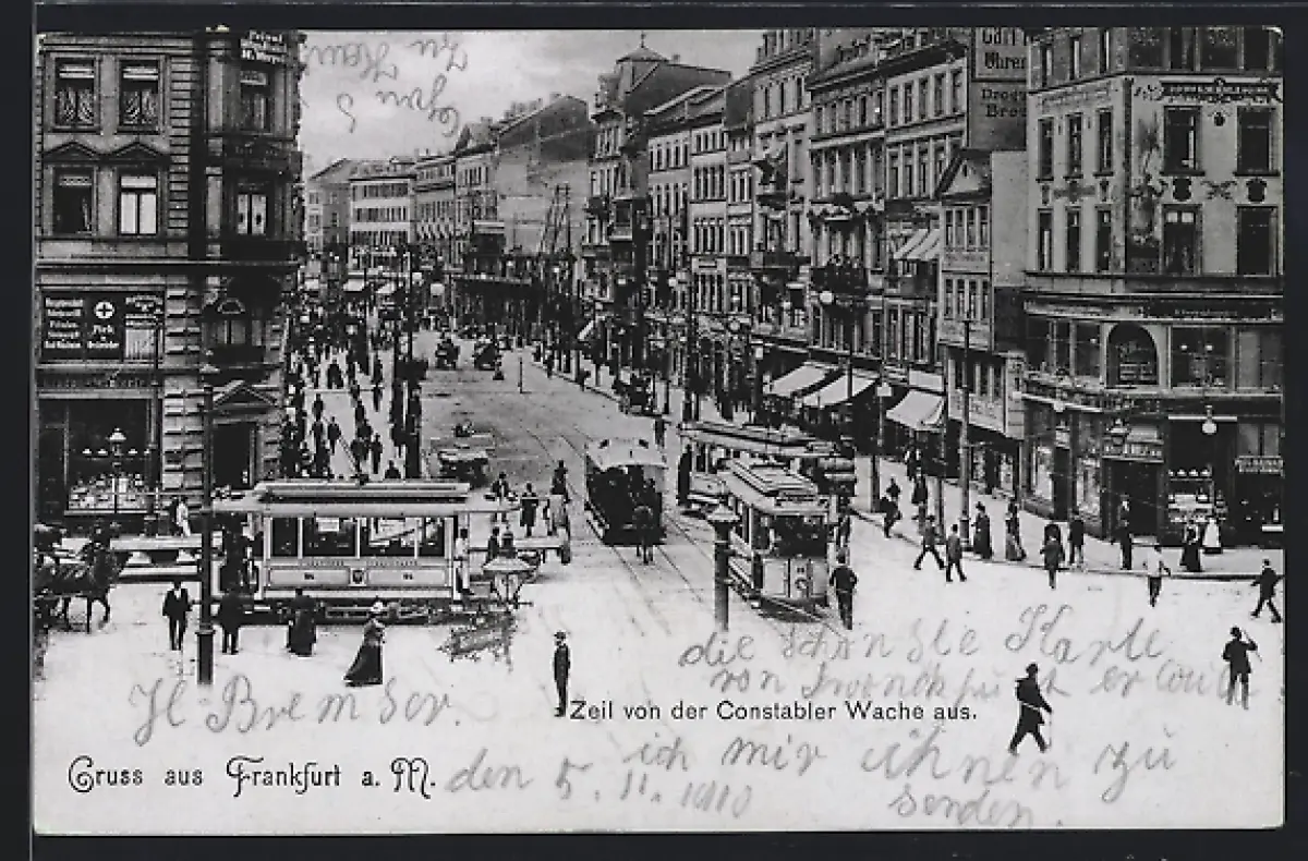 AK Frankfurt /Main, Zeil von der Constabler Wache aus mit Strassenbahn