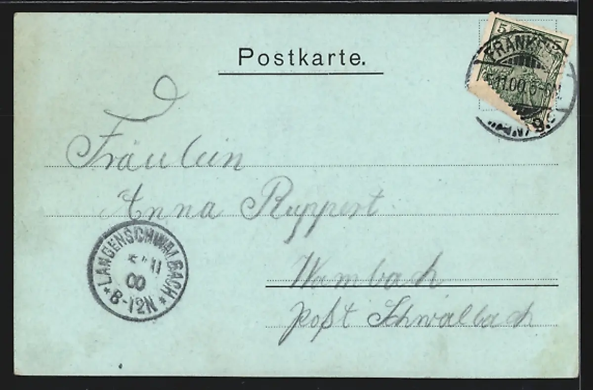 gelaufen 1900, Briefmarke entfernt, rückseitig Klebe- und Papierreste, guter Zustand