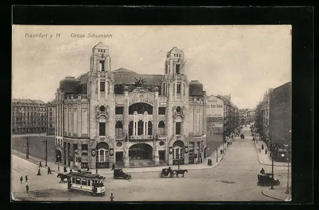 AK Frankfurt a. M., Strassenbahn vor Circus Schumann