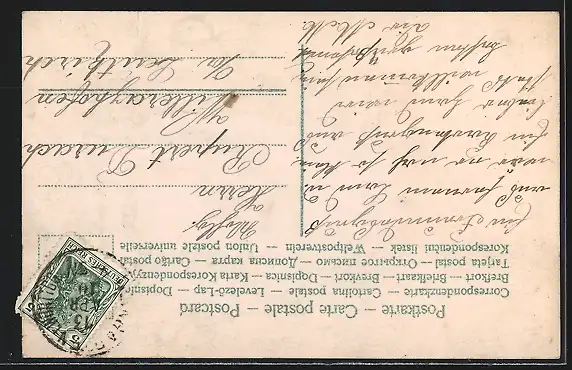 alte Ansichtskarte, gelaufen 1910, Bugspuren oben li. und re., guter Zustand