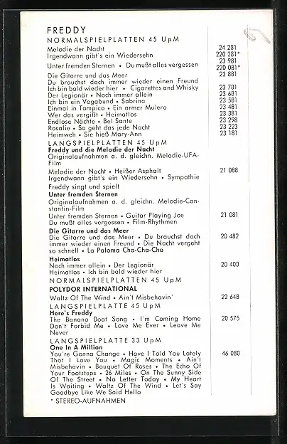 AK Freddy, Portrait mit Mütze in der Hand