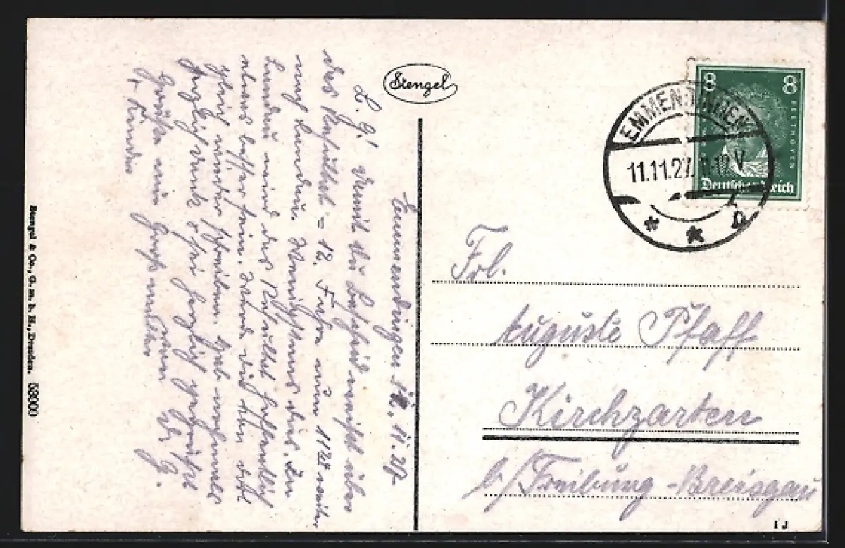 alte Ansichtskarte, gelaufen 1927, minimale Einrisse li. mittig, guter Zustand