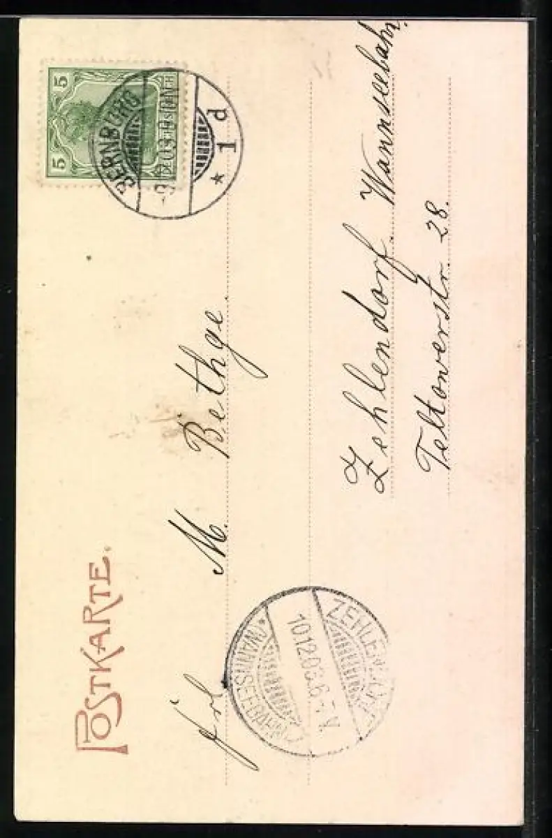 alte Ansichtskarte, gelaufen 1903, Stempelspur, guter Zustand