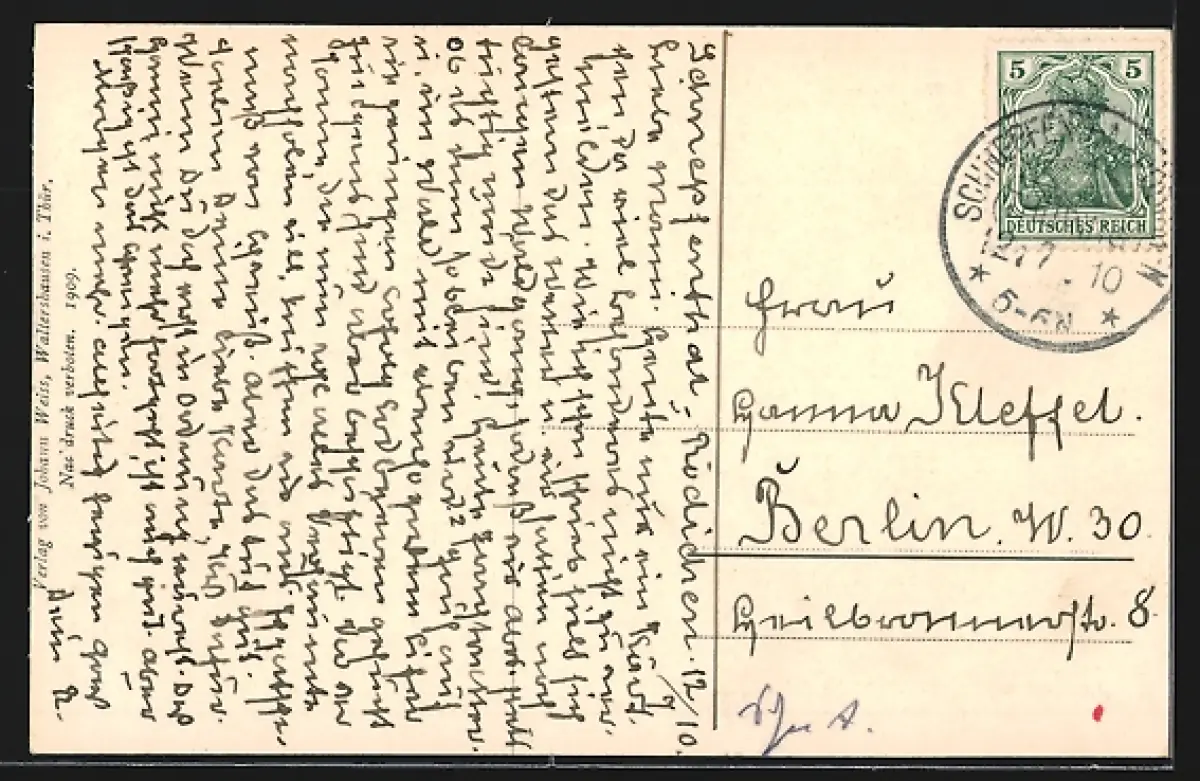alte Ansichtskarte, gelaufen 1910, Stempelspur, guter Zustand