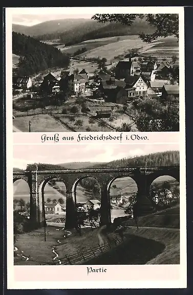 AK Friedrichsdorf i. Odw., Panorama & Partie mit Viadukt