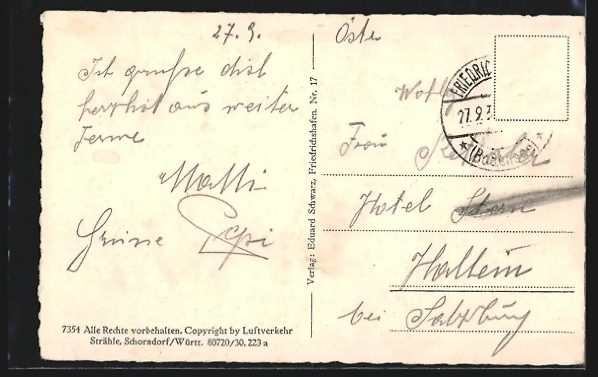 AK Friedrichshafen i. B., Altstadt und Zeppelinwerft vom Flugzeug aus