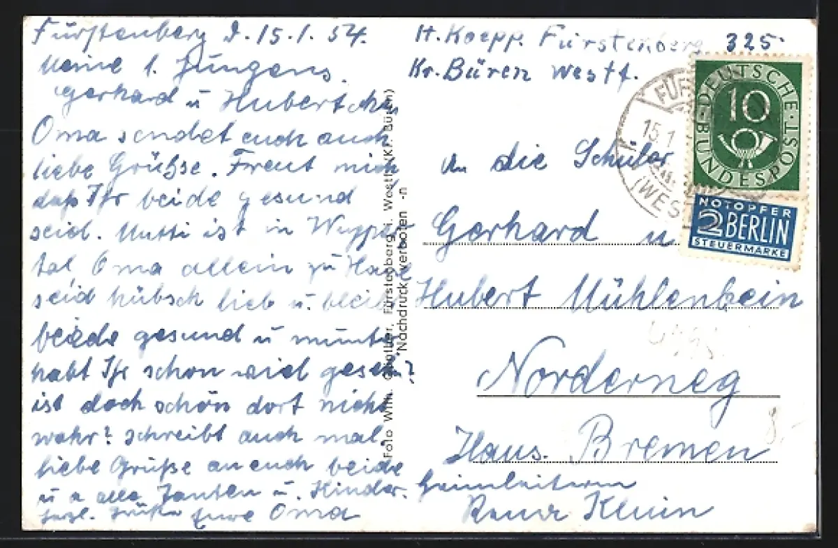 alte Ansichtskarte, gelaufen 1954, Bugspur mittig, guter Zustand