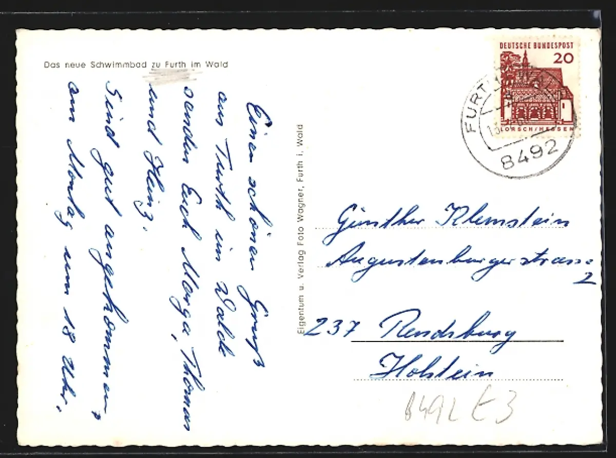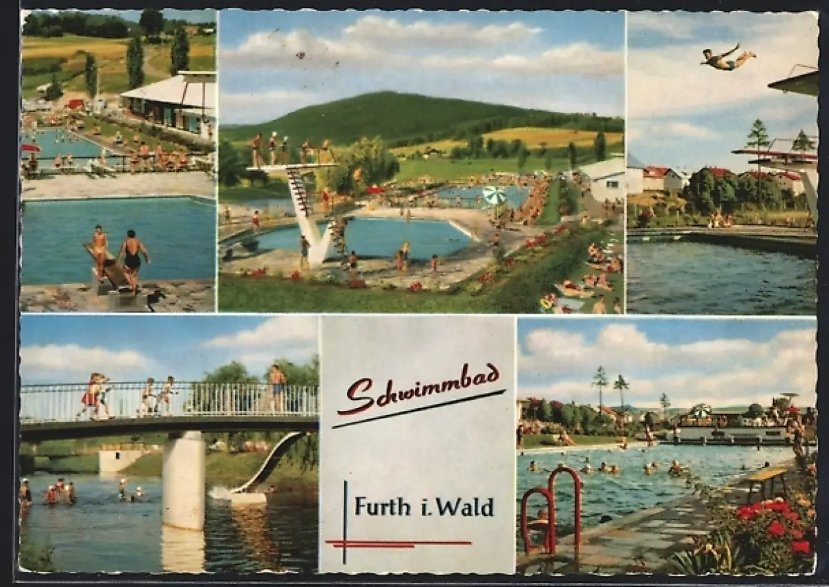 AK Furth i. Wald, Freibad mit Sprungturm, Brücke, Badegäste im Becken