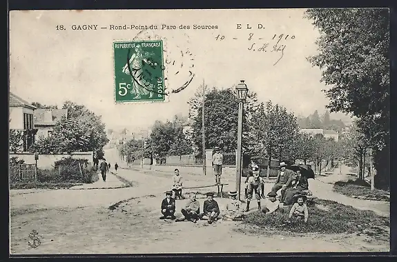 AK Gagny, Rond-Point du Parc des Sources avec habitants et lampadaire