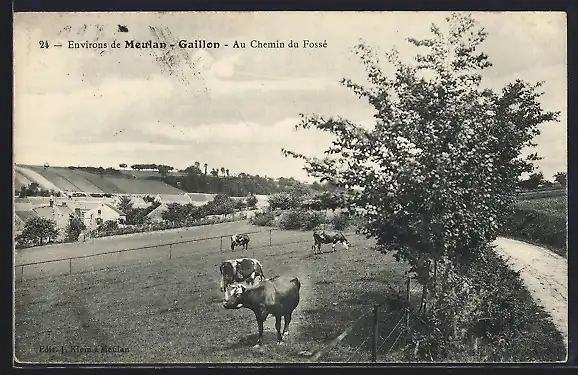AK Gaillon, Au Chemin du Fossé avec des vaches dans le pré